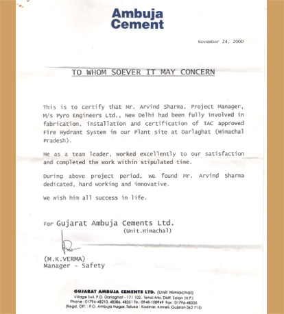 Ambuja Cement Ltd Certificate Date 24-11-2000